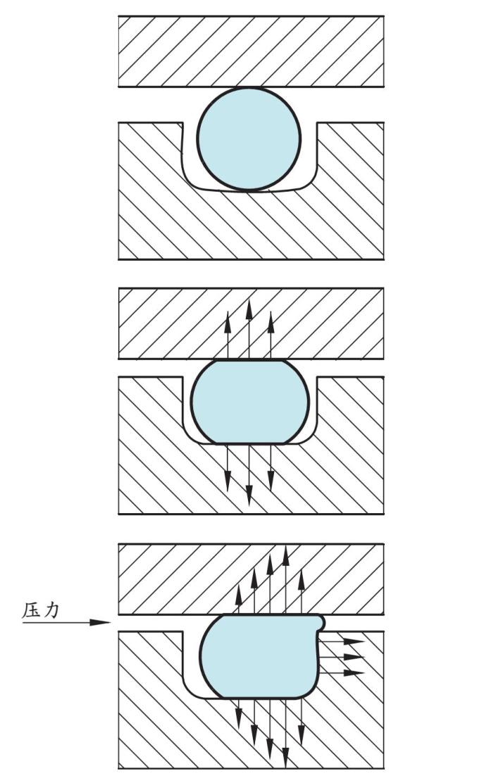在压力作用下,O形圈的形状和具有高表面张力的液体相仿。压力朝各个方向等值传递。