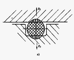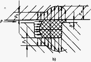 将 O 形圈安装在沟槽内时,要受到拉伸或压缩。若拉伸和压缩的数值过大,将导致O形圈截面过度增大或减小,因为拉伸1%相应地使截面直径W减小约0.5%。对于孔用(内压)密封,O形圈最好处于拉伸状态,最大允许拉伸量为6%;对于轴用(内压)密封,O 形圈最好延其周长方向受压缩,最大允许周长压缩量为3%。