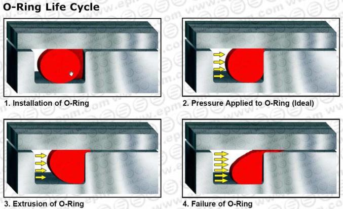 O型圈密封是一种挤压型密封。当密封件产生初始形变和应力Pseal,Pw>Pseal时,将不会泄漏。